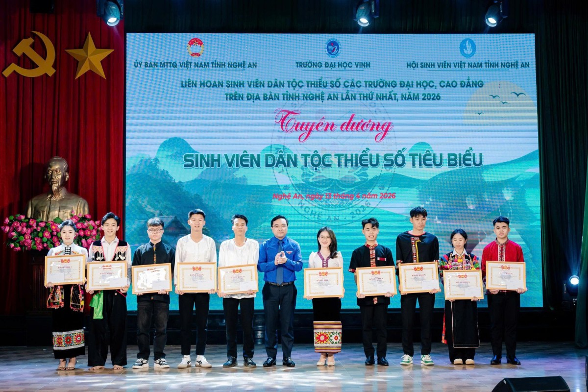 Trong không khí sôi nổi và giàu cảm xúc, Liên hoan sinh viên dân tộc thiểu số các trường đại học, cao đẳng trên địa bàn tỉnh Nghệ An lần thứ nhất, năm 2026 đã diễn ra thành công, là không gian đặc biệt kết nối – sẻ chia – lan tỏa những giá trị tốt đẹp của tuổi trẻ vùng cao.